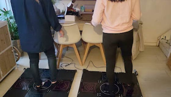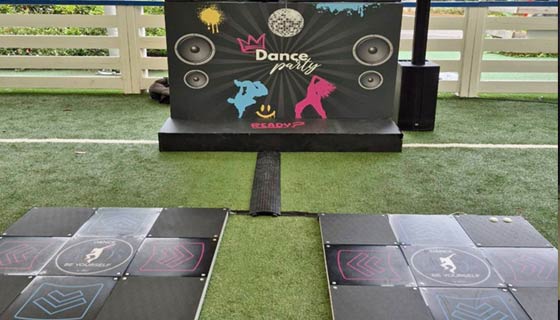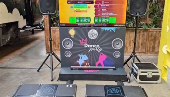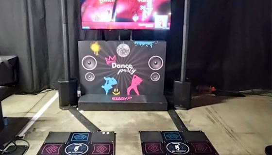 Notre machine à danser est un jeu de rythme ou il faut danser, il est possible d’y jouer seul ou deux, Vous devez suivre les mouvements affichés sur un écran de télévision qui est face à vous, et appuyer avec vos pieds sur les flêches du tapis de danse.