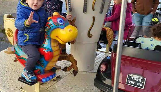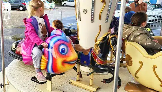 C’est parfait pour ceux qui recherchent de l’excitation et des rires partagés. Laissez vos enfants s’installer et « rouler » ! Émerveillez-vous devant leurs sourires et plongez-vous dans l’ambiance enfantine de votre jeunesse. Dégustez des crêpes ou encore des pop-corn ou même des barbes à papa encore et encore : MAIS QUEL BONHEUR ! C’est pourquoi nous proposons un carrousel tout mignon. Si vous cherchez une animation plus authentique, qui fait plaisir a tout le monde, qui sera prise en photo par tous les parents  participants, alors choisissez notre location manège carrousel traditionnel et rendez ainsi les enfants heureux comme les parents. En un mot ,c’est une animation qui cartonne !