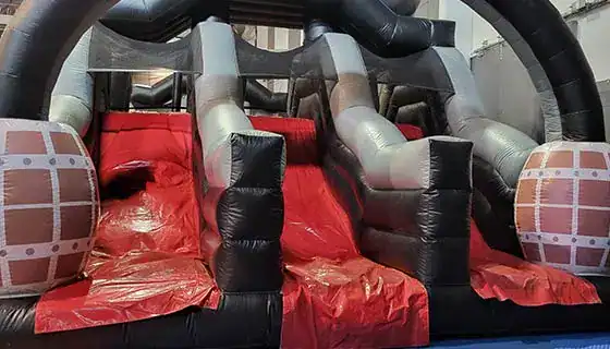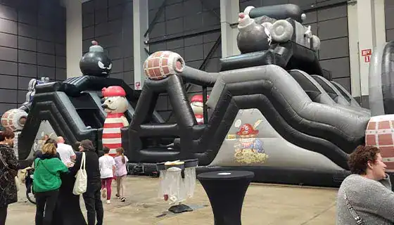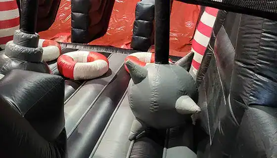 Vous allez vraiment être surpris par la taille immense de notre parcours gonflable pirate. Elle est composée d’une succession d’obstacles.  il atteint 21 mètres d’amusement pour les enfants. Tout est possible avec cette structure gonflable !